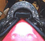 Seitliche Schiefe: Dieser Zustand eine Pferdes bewirkt oft, dass ein Sattel leicht auf einer Seite liegt. Dieses ist normalerweise das Resultat, wenn ein Pferd stark rechts- oder linksseitig ist. Die Reiter glauben, sie sitzen schief oder der Sattelbaum wäre krumm. Oft wird dieses verursacht durch einen Reiter, der nur auf einer Hand galoppiert oder diagonal sitzt. Manchmal ist ein Pferd auch prädisponiert für diese Einseitigkeit. Das Ziel muß hier sein, das Pferd so zu reiten, das es mit der Zeit symetrisch wird. Keine leichte Aufgabe, wenn der Reiter aufgrund der Schiefe des Pferdes selbst mit seiner eigenen seitlichen Balance kämpfen muß. Unser Trachtensystem kann bis zu einem gewissen Grad auch Asymetrien des Pferdes selbstständig ausgleichen, da die Trachten unabhängig voneinander sich dem Pferd anformen. Bei sehr starken Asymetrien können aber weitere Maßnahmen nötig sein. Hierfür kann Ihr Sattel mit dem „Adjustable System“ ausgestattet werden. Wenn Ihr Pferd sehr einseitig und eine Seite deutlich stärker als die andere ist, ist es sinnvoll, die „Adjuster“ auf einer Seite herauszudrehen um den Sattel damit anzuheben und seitlich auszubalancieren. Gleichzeitig sollte der Reiter aber auch für ein entsprechendes Training und/oder einen korrigierenden Beschlag sorgen um diesem Problem Abhilfe zu schaffen. Wenn sich die Bewegung des Pferdes und seine Form verbessert haben, können Sie die „Adjuster“ wieder eindrehen. Falls Ihr Sattel keine „Adjuster“ hat, fragen Sie uns bitte nach Balance-Plättchen. 6. Das Adjustable-System: Das Adjustable-System ist eine Zusatzausstattung, die es erlaubt Ihren Sattel ganz einfach und ohne großen Aufwand auszubalancieren. ( Ob Ihr Sattel diese Zusatzausstattung hat, erkennen Sie an dem Zusatz „AD“ oder "ADJ" hinter der Seriennummer.) Durch einfaches Drehen einer Schraube können Sie den Sattel vorne auf beiden Seiten anheben oder senken. Die "Adjuster" haben konstruktionsbedingt etwas "Spiel" zwischen den beiden ineinander verschraubten Bolzen. Wenn Sie den Sattel mittels der Adjuster angehoben haben, sollten Sie ein leicht ( !!) wieder zu lösendes Schraubensicherngsmittel verwenden, damit der in seiner Postion bleibt. Ansonsten könnte er sich durch die Drehbewegung der Trachte während des Reitens selbsttätig wieder hineindrehen. Ein herausgedrehter Aduster kann ohne Schraubensicherungsmittel auch ein leichtes, klackendes Geräusch machen, verursacht durch das "Spiel" zwischen den Bolzen. Wenn Sie später die Position des Adjuster wieder ändern wollen, müssen Sie das Schraubensicherungsmittel "aufbrechen". Drehen Sie hierfür bitte nicht mit dem Inbusschlüssel an der Schraube, sondern lösen den Adjuster mit Hilfe eines 19er Maulschlüssel. Diesen setzen Sie oberhalb der Trachte an dem entsprechenden 6-Kant an.
